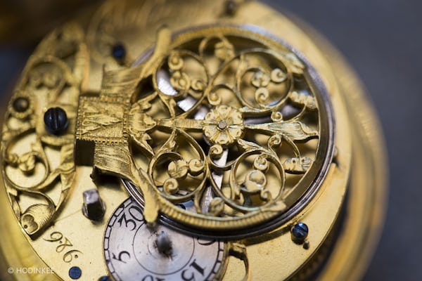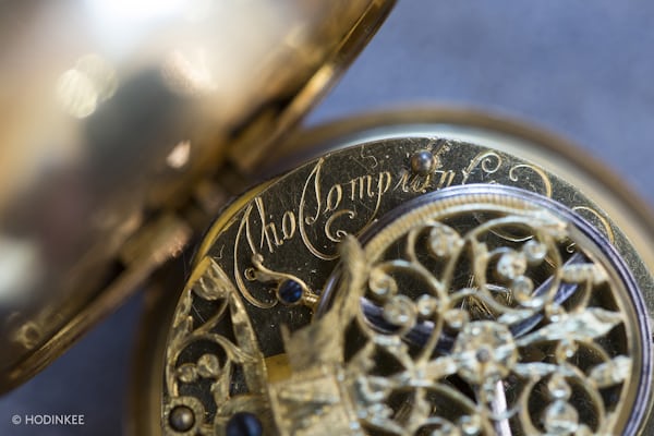 What his watches have in common is that they contain early examples of important innovations. Tompion was one of the first watchmakers to utilize balance springs in his watches, and Somlo’s example, made in the 1680s, is one of his earliest attempts (this was only a few decades after Huygens fitted a spiral balance spring to a timepiece for the first time, around 1657). He also has a watch made by Graham, Tompion's apprentice, that contains a very early cylinder escapement, which Graham had introduced just two years earlier, in 1725. The cylinder escapement was the first real alternative to the earlier verge, and became very popular for a time until being eclipsed by the lever and detent escapements. The watch dates to 1727.