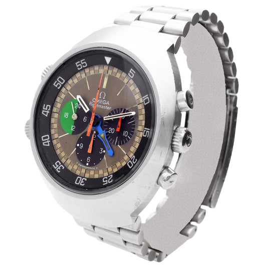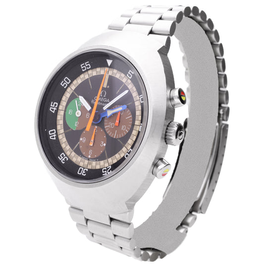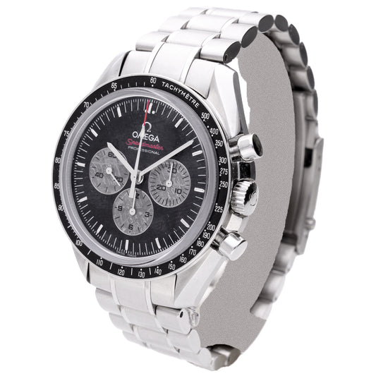 Stainless steel OMEGA 'Apollo Soyuz' Speedmaster wristwatch with meteorite dial (Limited edition 1933/1975). Made 2011
