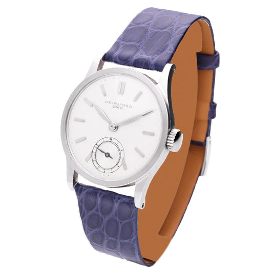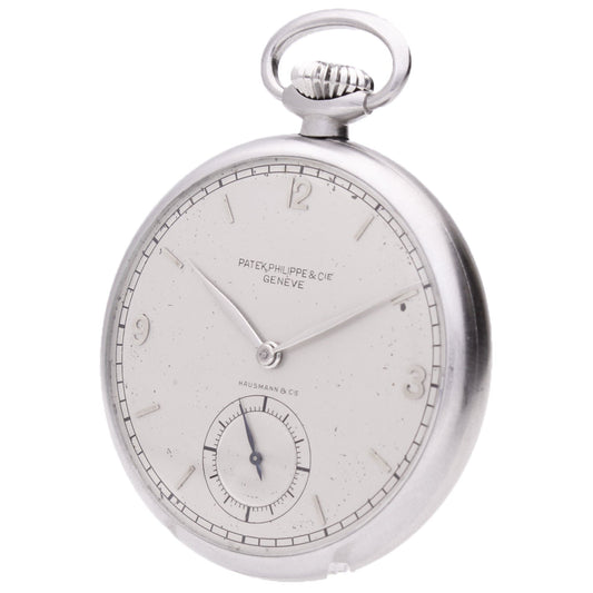 Stainless steel Patek Philippe ref. 735 open face pocketwatch retailed by Haussmann & Cie. Made 1924