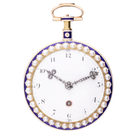 18ct yellow gold Gregson á Paris, enamel and pearl set pocket watch. Circa 1780.