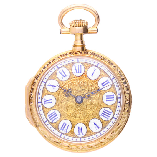 18ct yellow gold Patek Philippe Open face pocket watch with scene of "St.George and the Dragon". Made 1887